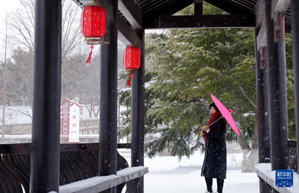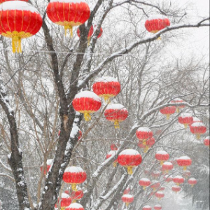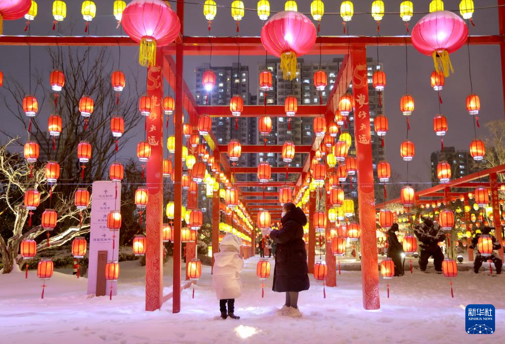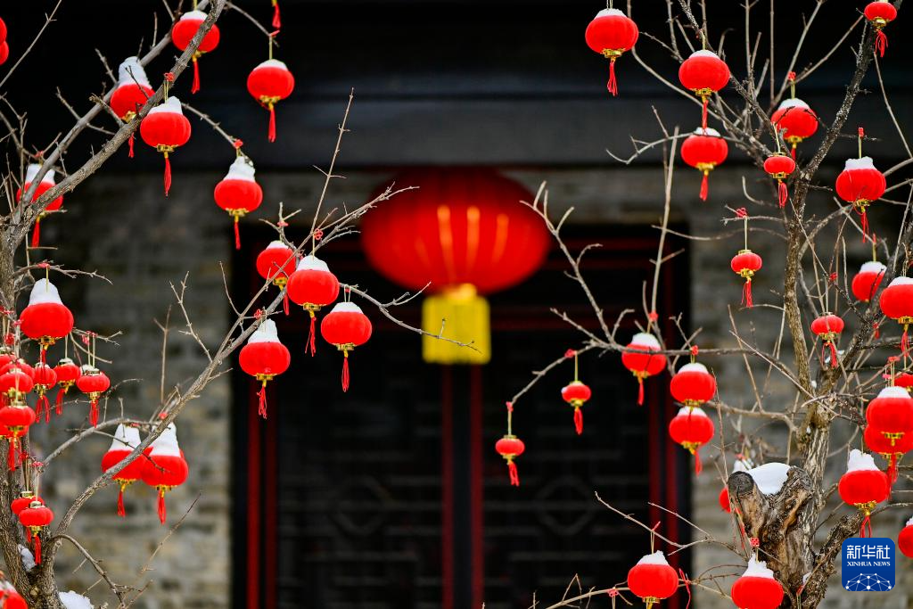 元宵佳节来临之前,我国多地出现降雪天气,喜庆的红灯笼和皑皑白雪相互映衬,营造出浓浓的节日气氛。