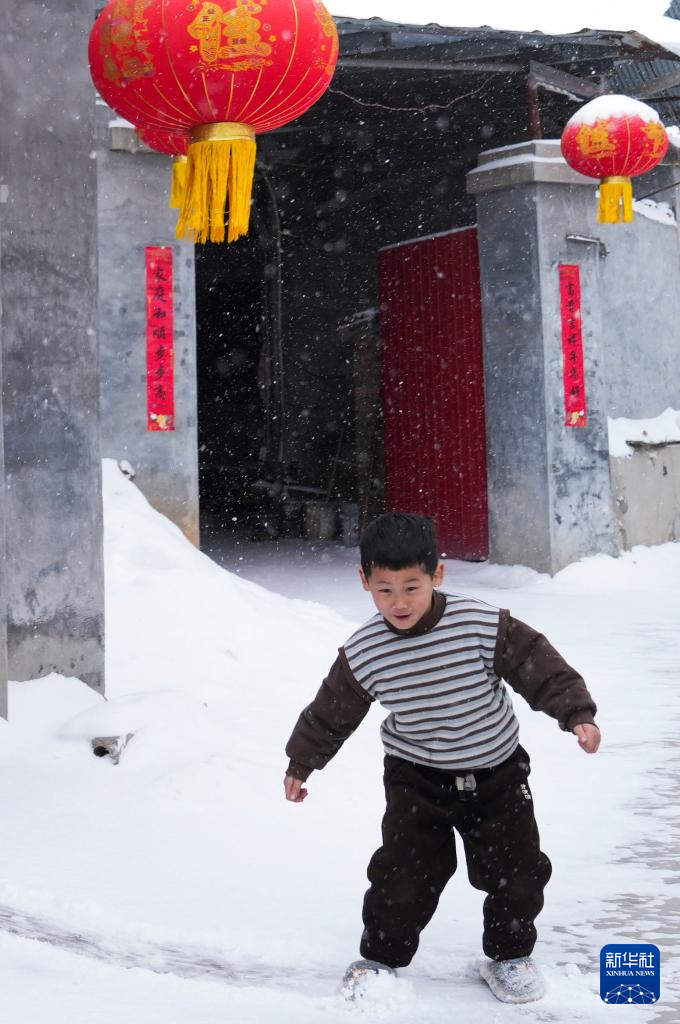 2月21日,山东省邹平市西董街道东峪村一名小朋友在家门口的雪地里玩耍。