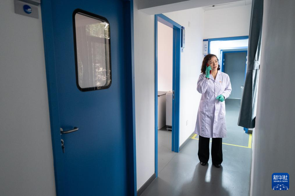 王琼在武汉宗关水厂化验室打电话联络工作(2月20日摄)。
