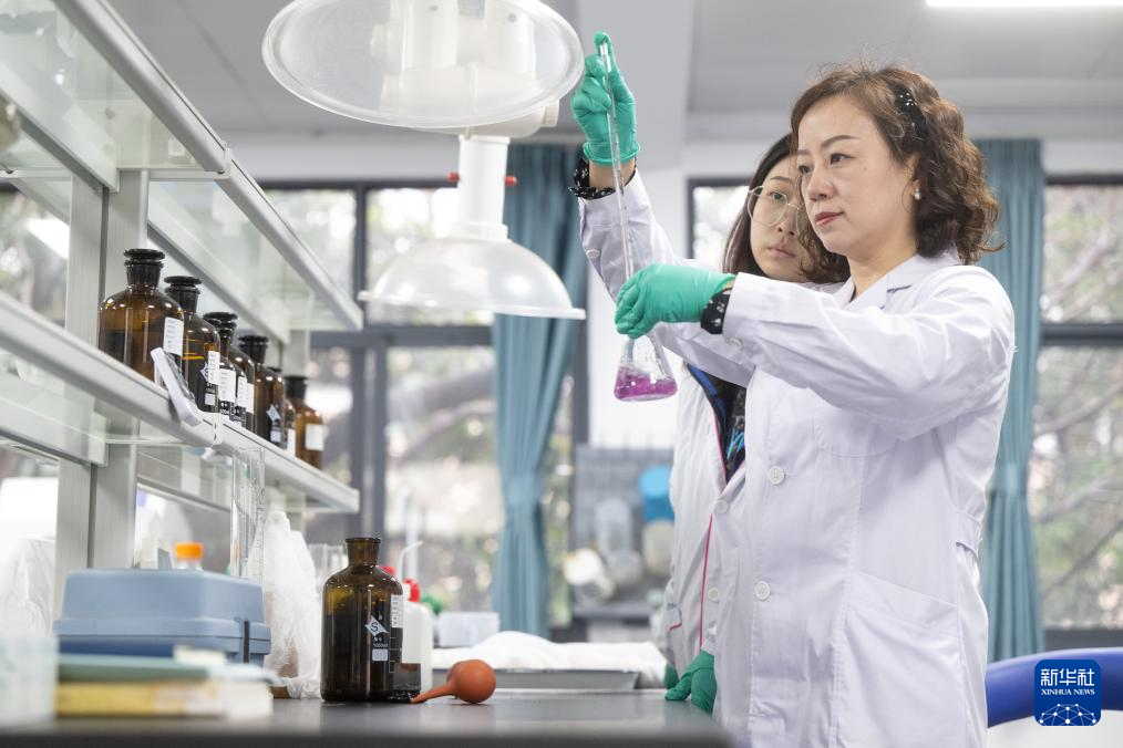 王琼在武汉宗关水厂化验室进行原水水质检验工作(2月20日摄)。