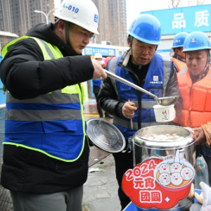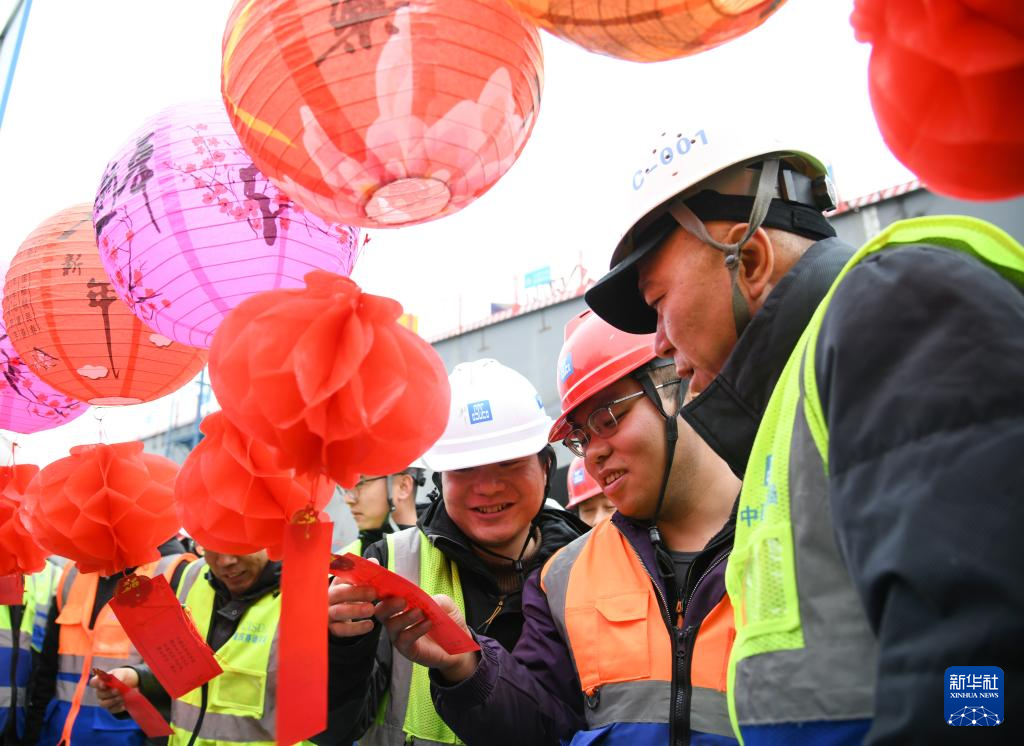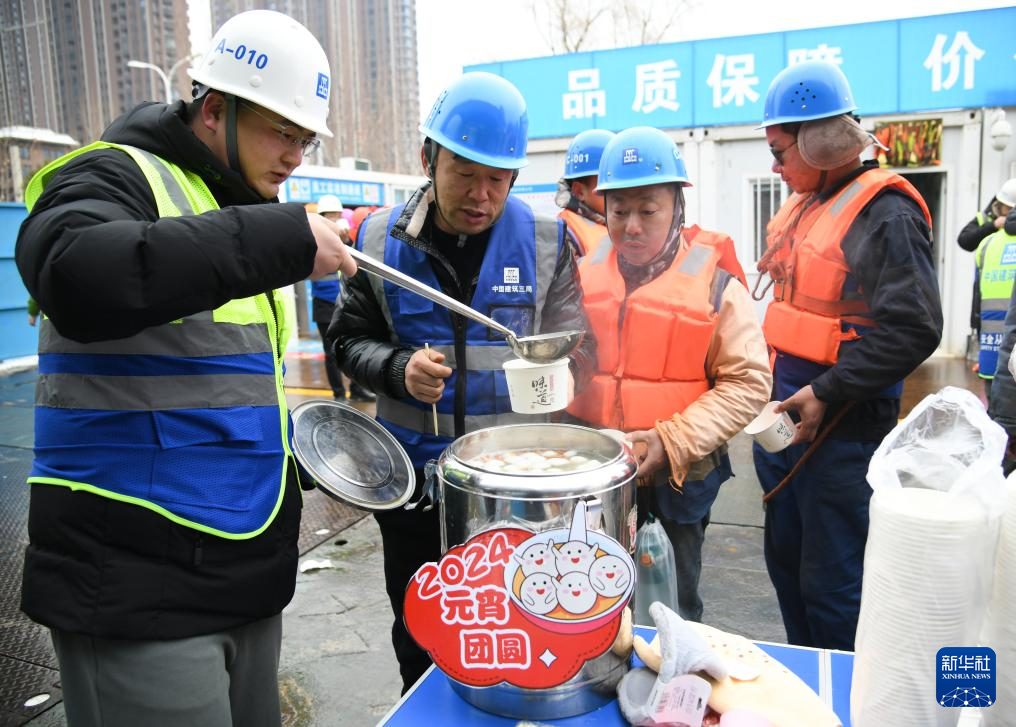 当日,在位于西安浐灞国际港的中建三局西北公司水流路跨灞河大桥项目工地,建设者欢聚一堂品元宵、猜灯谜,在丰富多彩的活动中迎接佳节。
