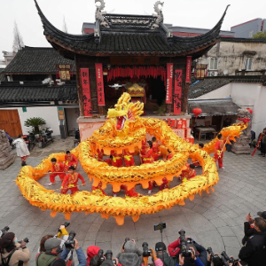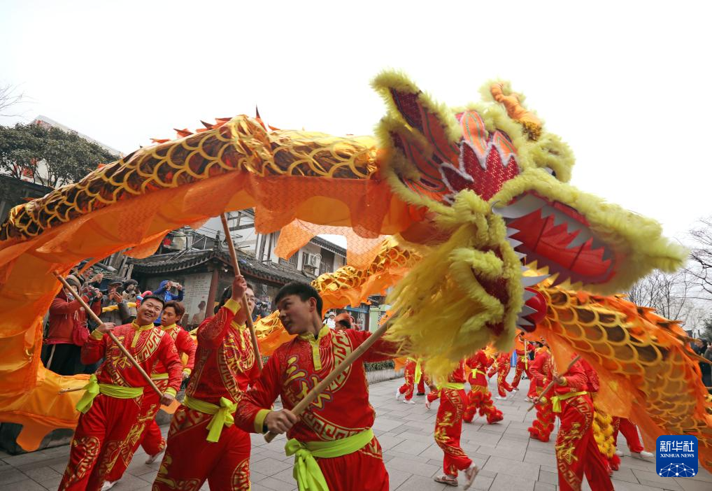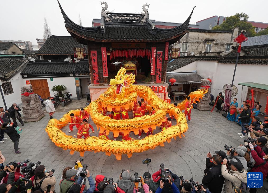 当日,“龙腾狮跃闹元宵”活动在上海浦东新区三林镇的三林老街举行,吸引众多市民参与,老街里洋溢着欢乐喜庆的节日气氛。