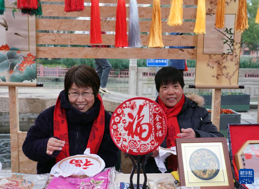 2月23日在三林老街上拍摄的三林刺绣的非遗项目展示。