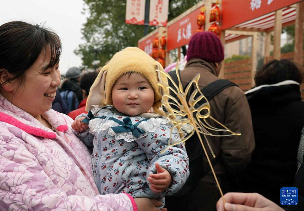 2月23日,一名小朋友和家人在三林老街上游玩。