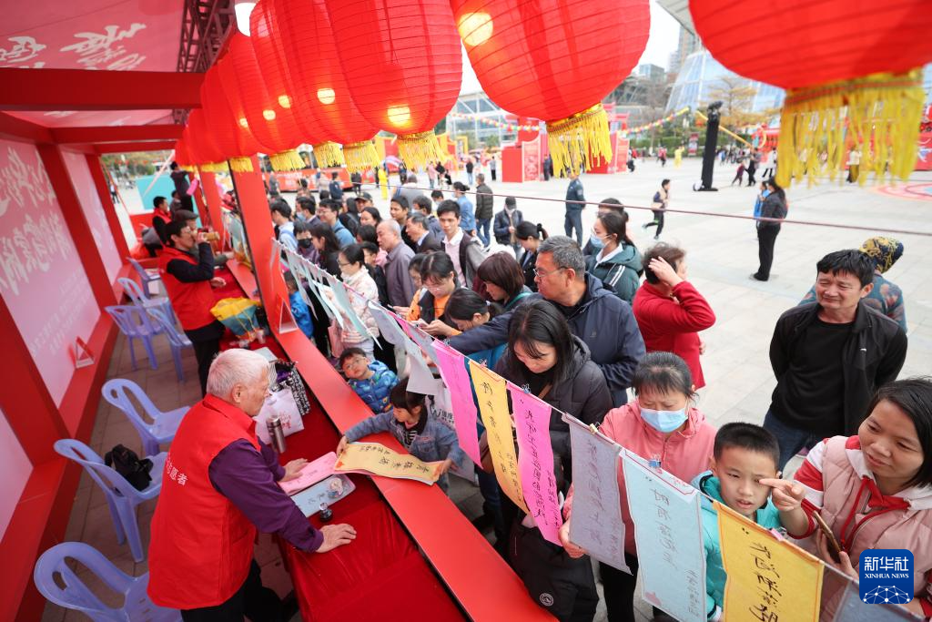 2月23日,在福建厦门五一文化广场,人们在迎元宵活动上猜灯谜。