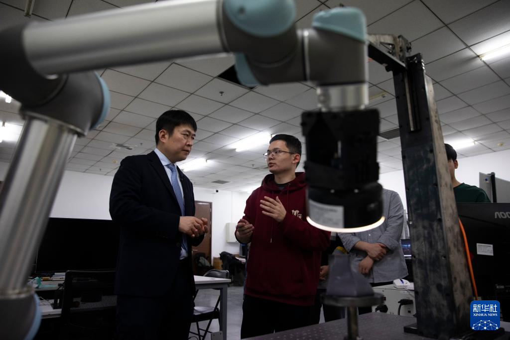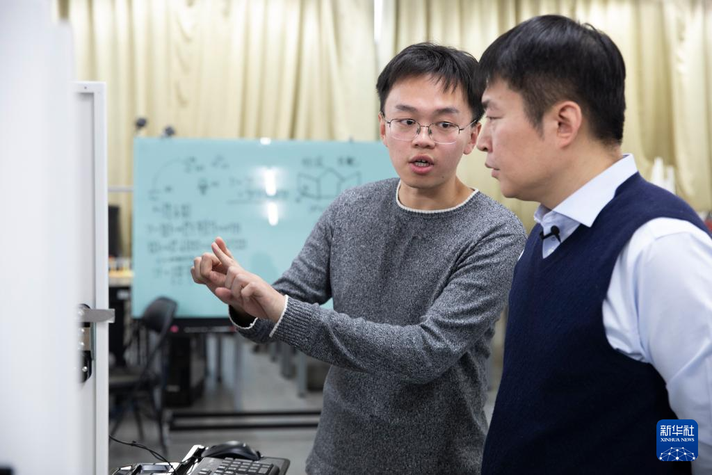 1月25日,张正涛(右)在中国科学院自动化研究所实验室,和学生讨论科研进展。