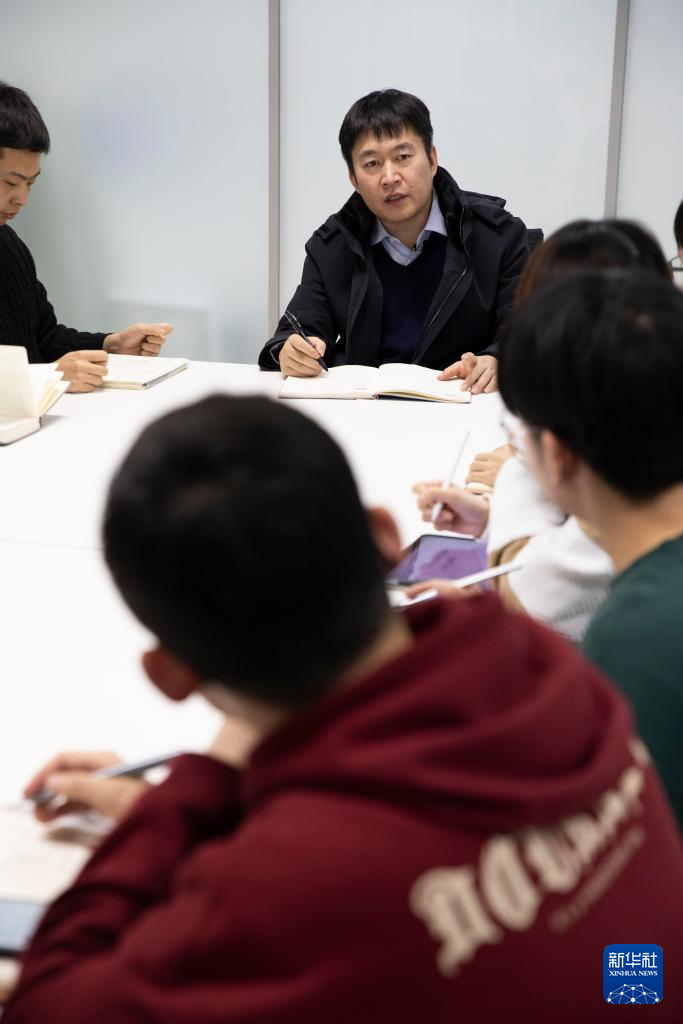 1月25日,张正涛在中国科学院自动化研究所会议室,和学生一起开组会。