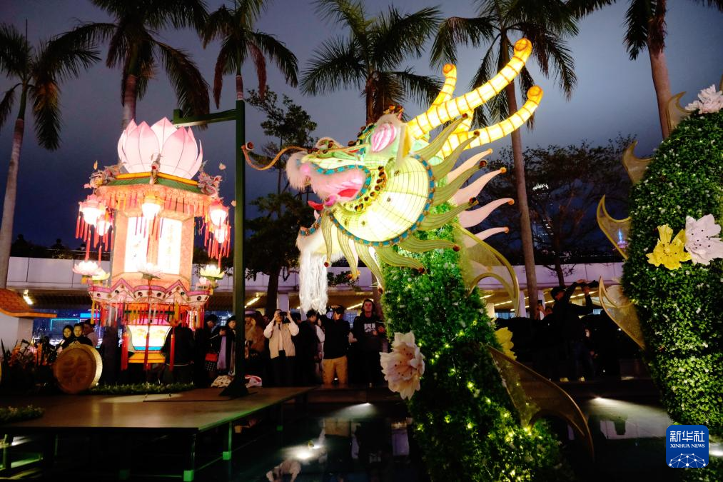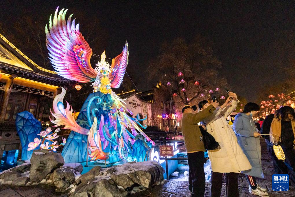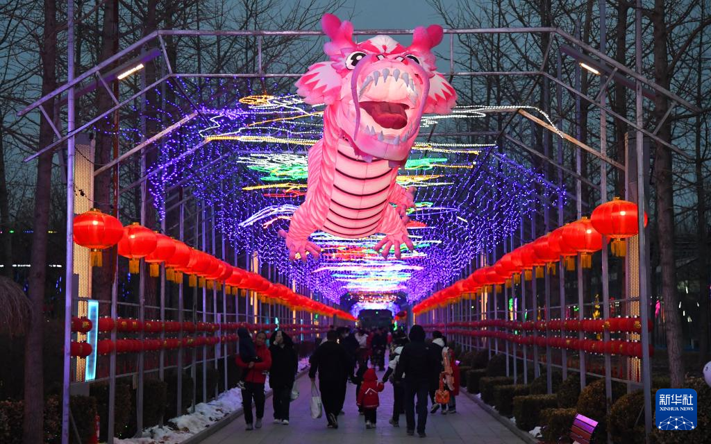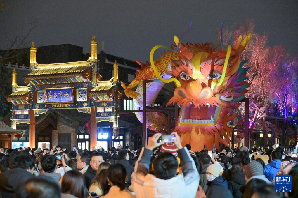 2月24日,人们在北京市西城区什刹海荷花市场观赏巨型龙灯“蛟龙出海”。