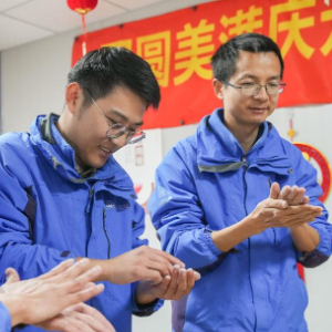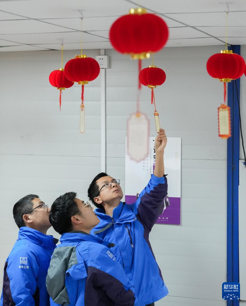 2月24日,建设者们在中建三局一公司上海浦东横沔项目部猜灯谜。