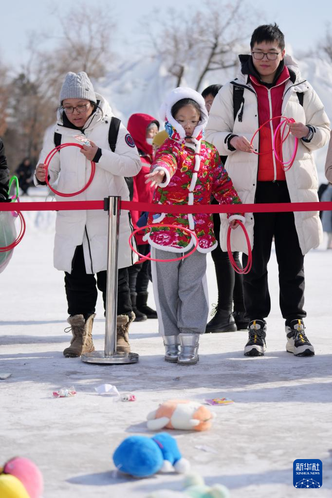 2月24日,游客在哈尔滨太阳岛雪博会园区内玩套圈。