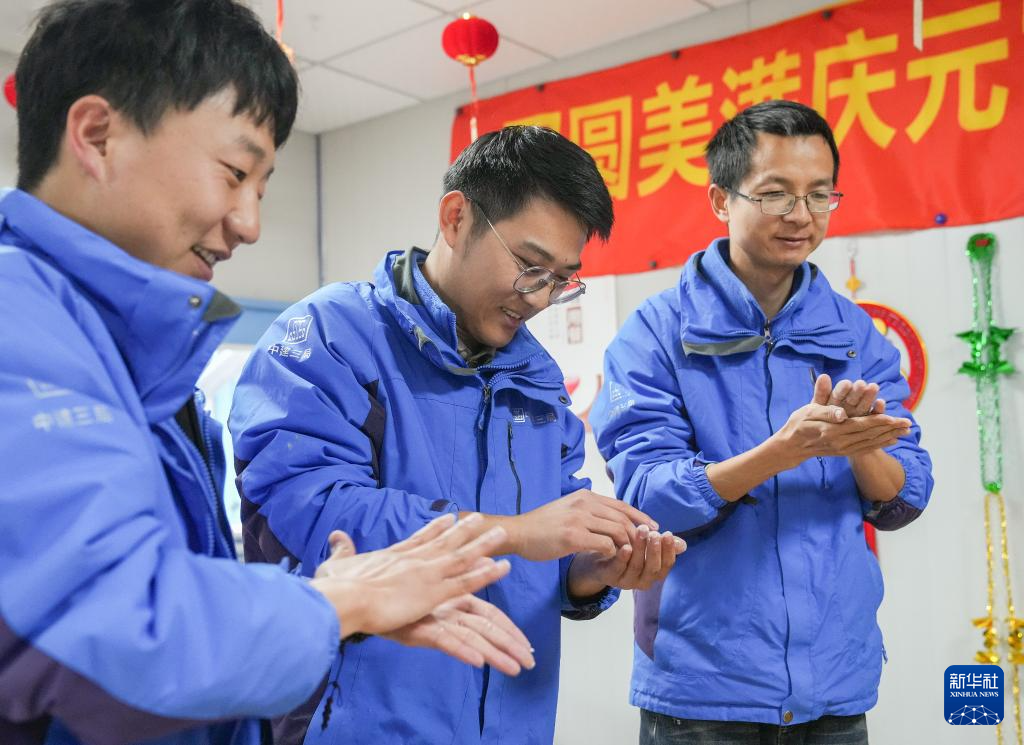 2月24日,建设者们在中建三局一公司上海浦东横沔项目部包汤圆。