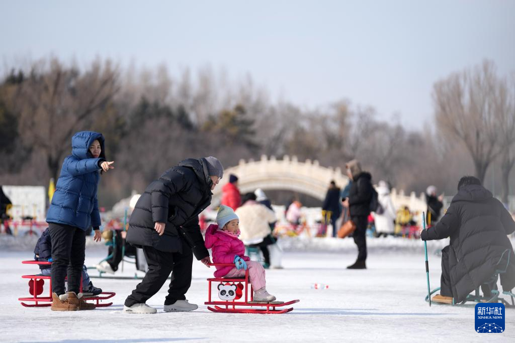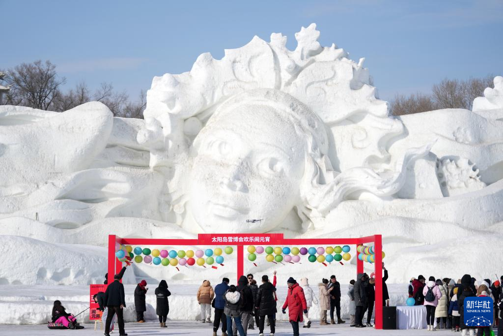 2月24日,游客在哈尔滨太阳岛雪博会园区内体验冰雪娱乐项目。
