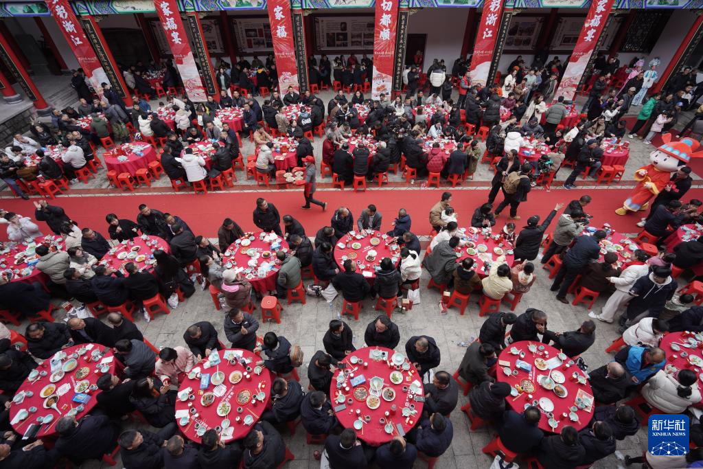 2月24日,游客在浙江省泰顺县三魁镇参加“吉祥泰顺·百家福宴”民俗文化风情节活动。