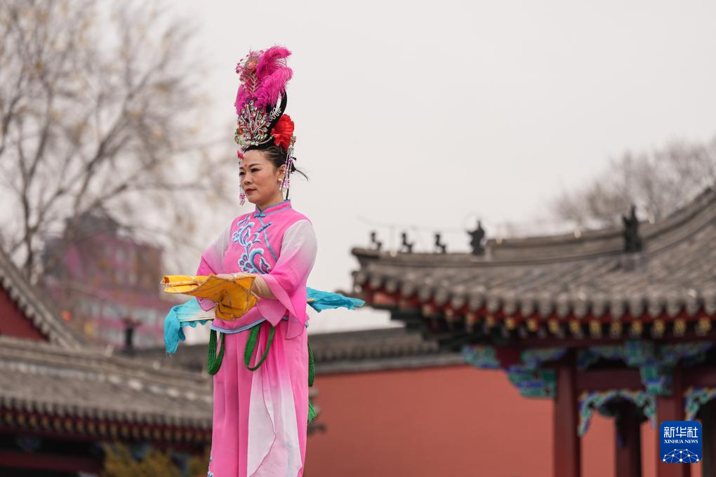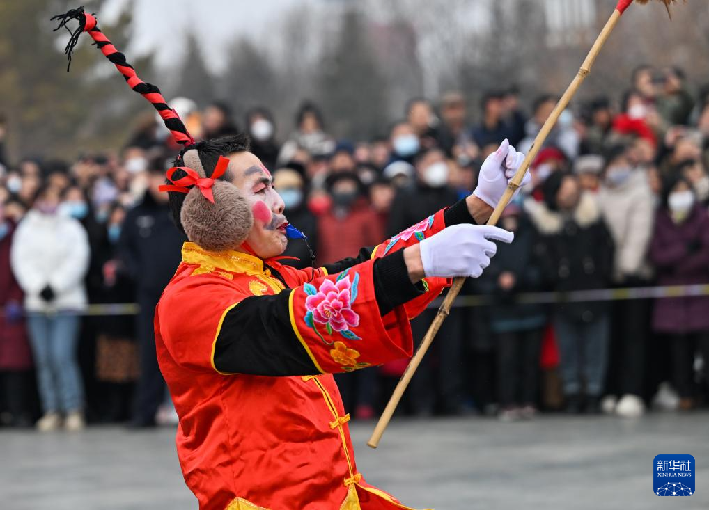 2月24日,民间艺人在河北省遵化市文化广场表演民俗节目。