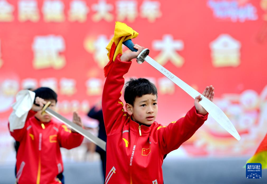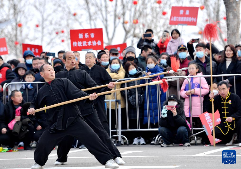 2月24日,选手在河北省石家庄市鹿泉区“金龙闹元宵”武林大会上表演传统武术。