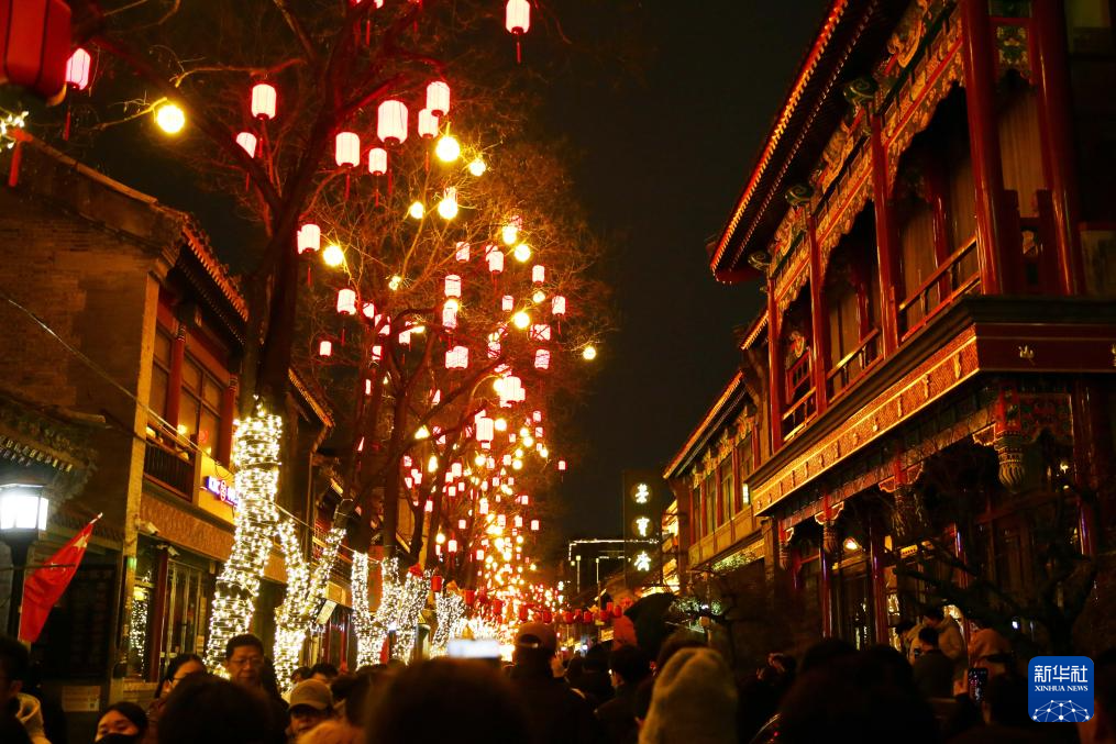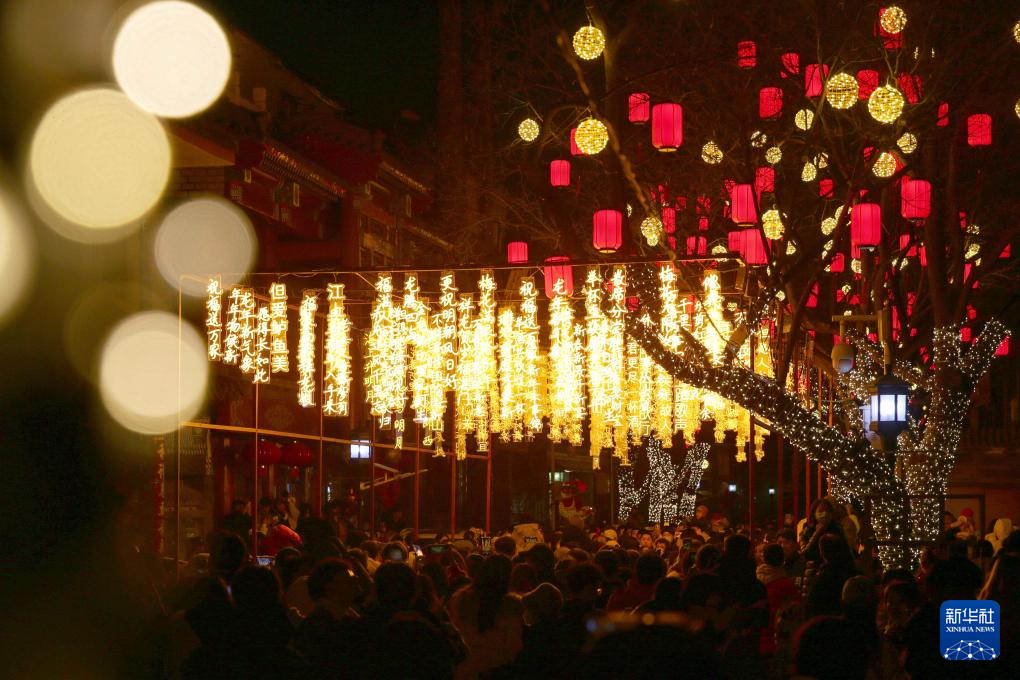 2月24日,人们在北京市西城区琉璃厂西街赏花灯。