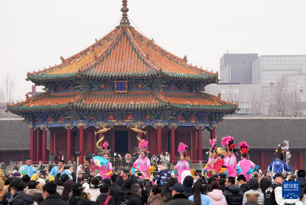 2月24日,演员在沈阳故宫博物院表演辽宁海城高跷。