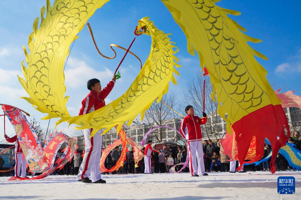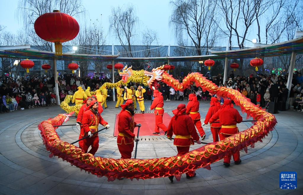 2月24日,在河南省商丘市夏邑县,演员在进行舞龙表演。