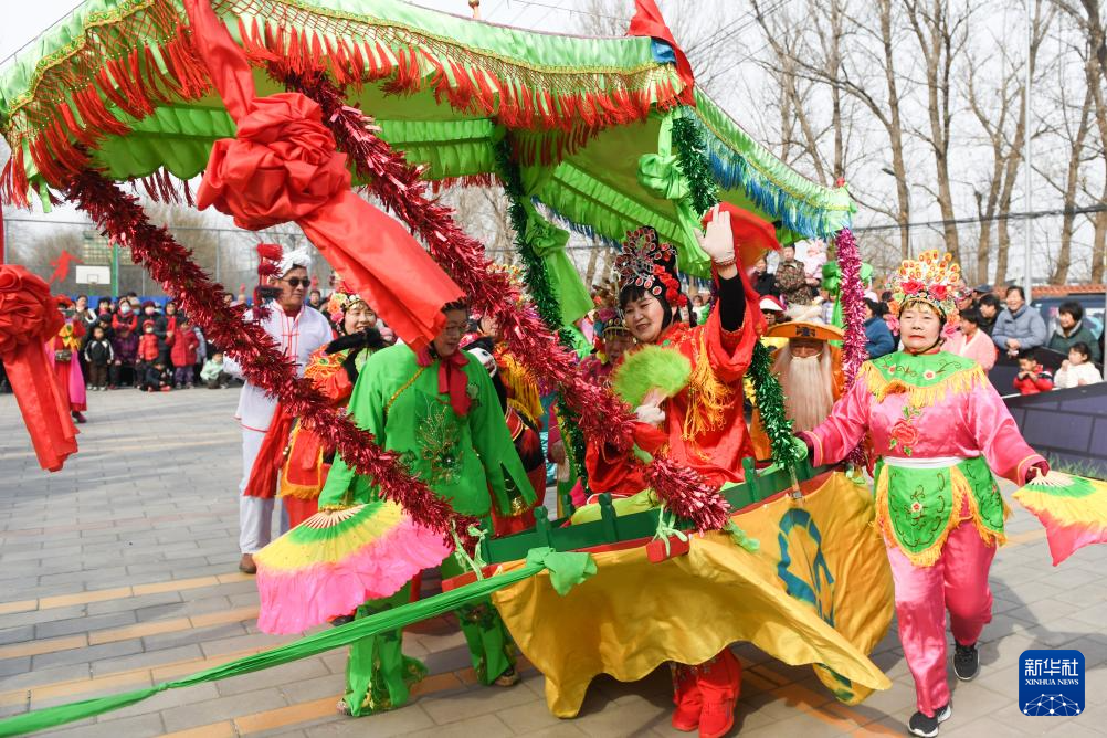 2月24日,在北京市通州区张家湾镇前街村,群众在进行传统民俗“小车会”表演。