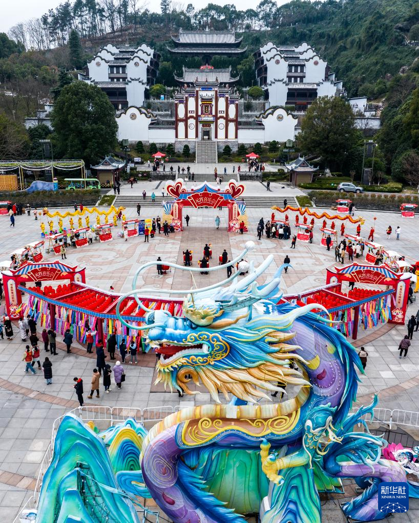 2月24日,人们在湖北省宜昌市秭归县屈原故里文化旅游区屈原广场参与闹元宵活动(无人机照片)。