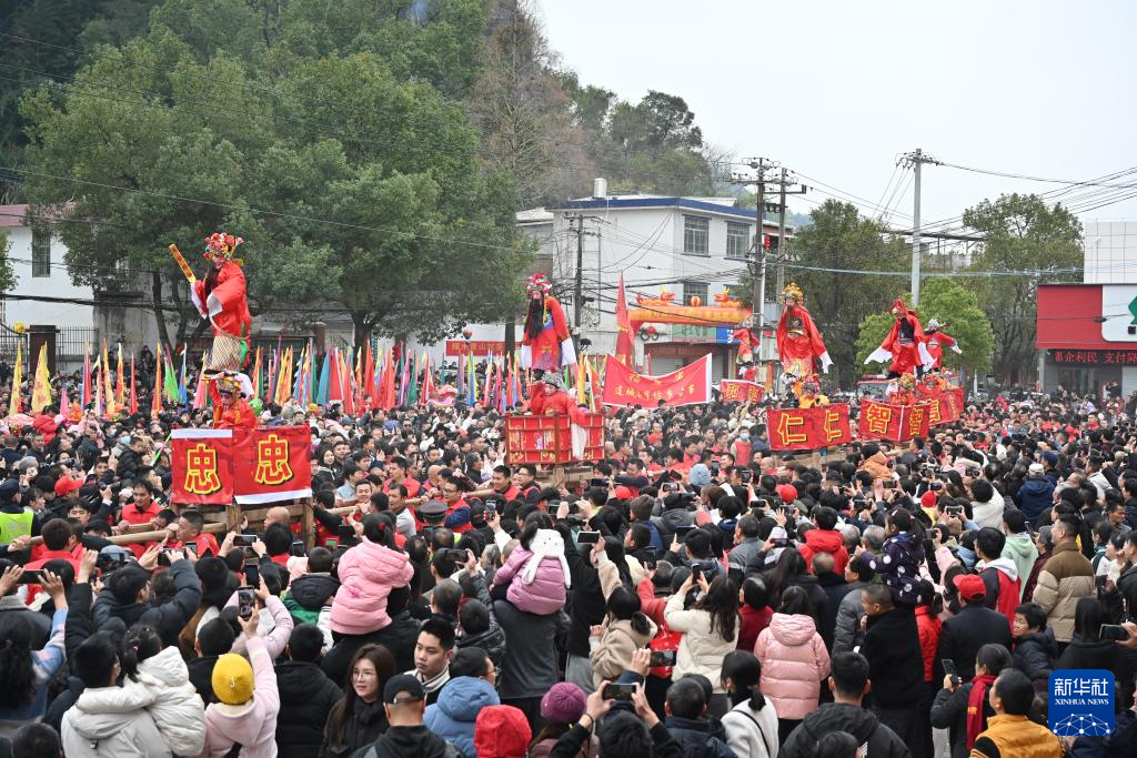 2月24日,福建省连城县罗坊乡走古事庆元宵活动吸引众多观众。