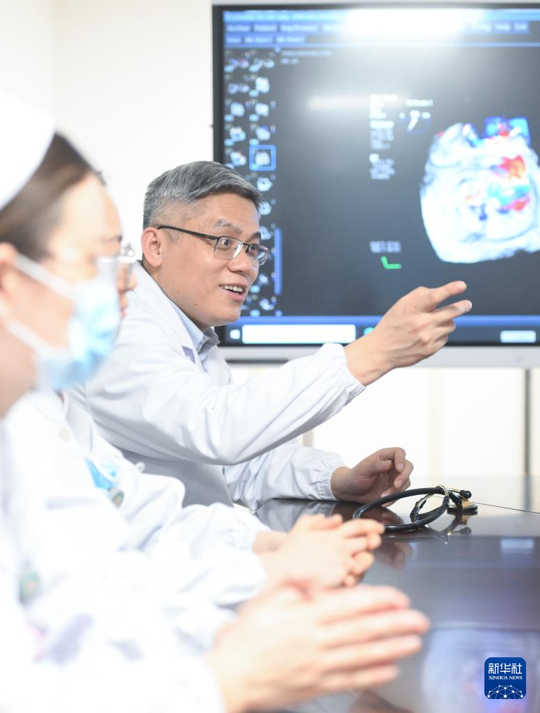在南京市第一医院,张俊杰(右一)和同事进行业务研讨(2月20日摄)。