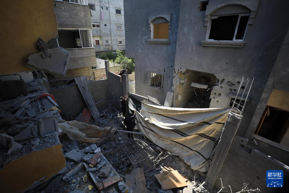 这是2月24日在加沙地带南部城市拉法拍摄的以军空袭后的建筑。