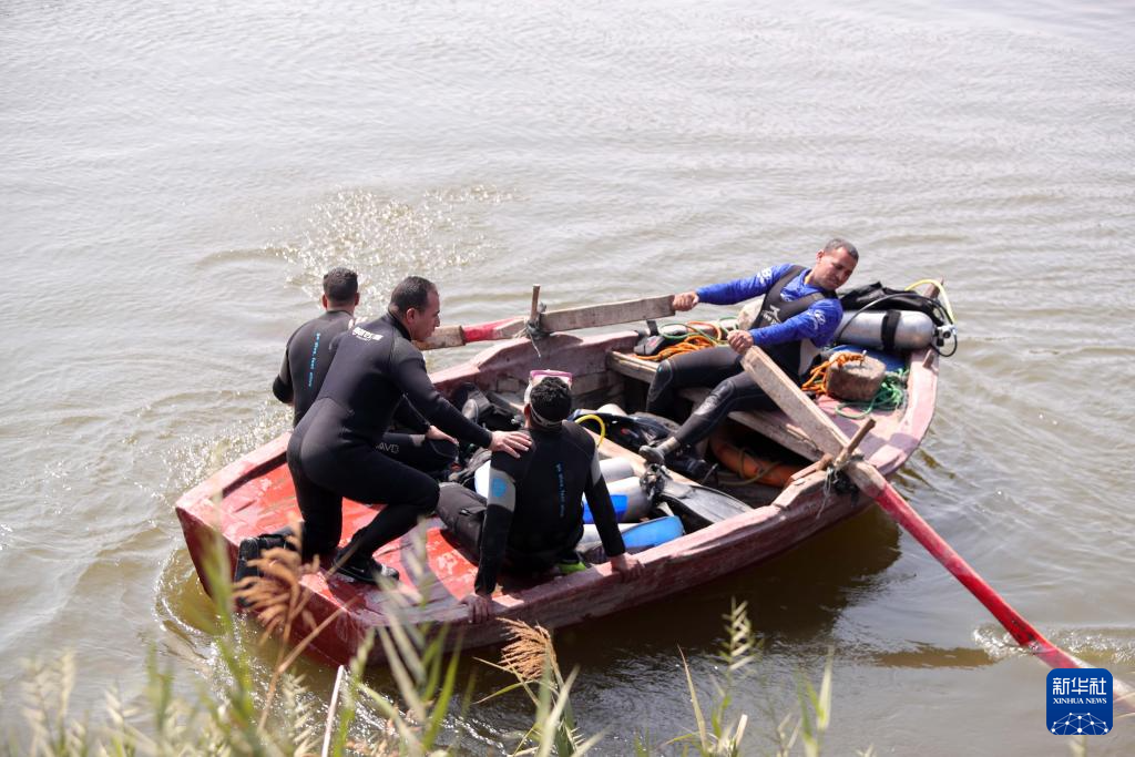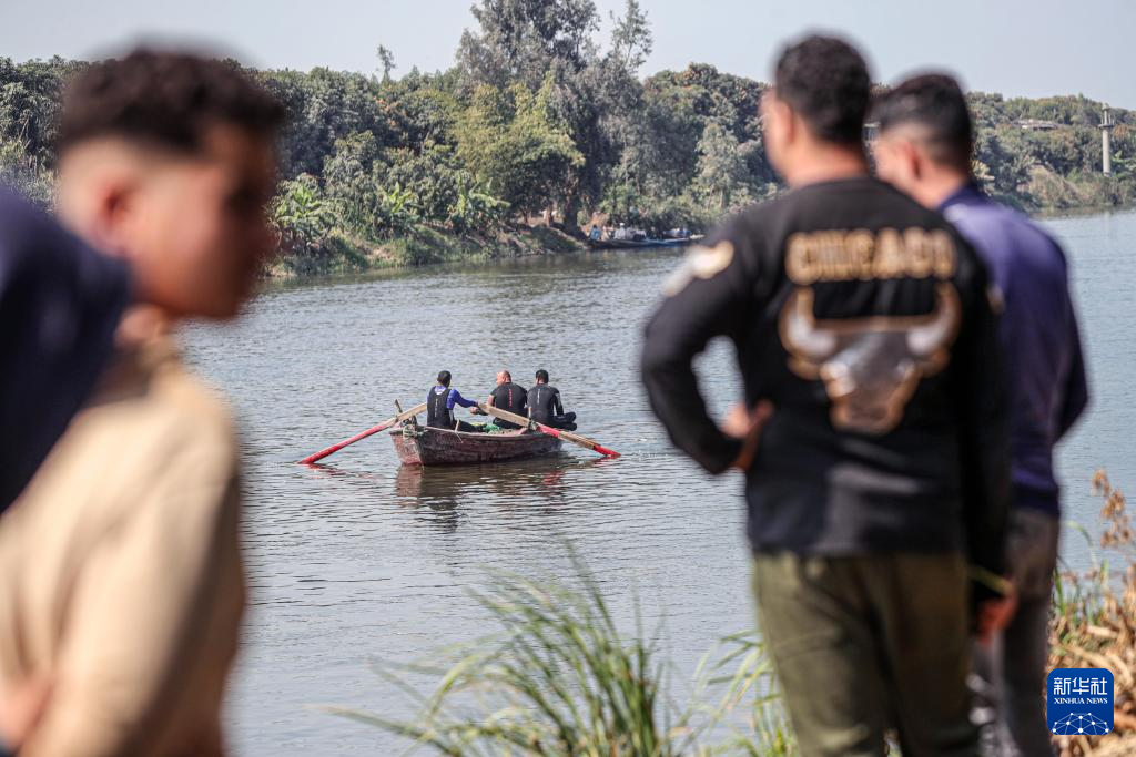 2月25日,在埃及吉萨省,救援人员在船只倾覆现场搜救失踪者。