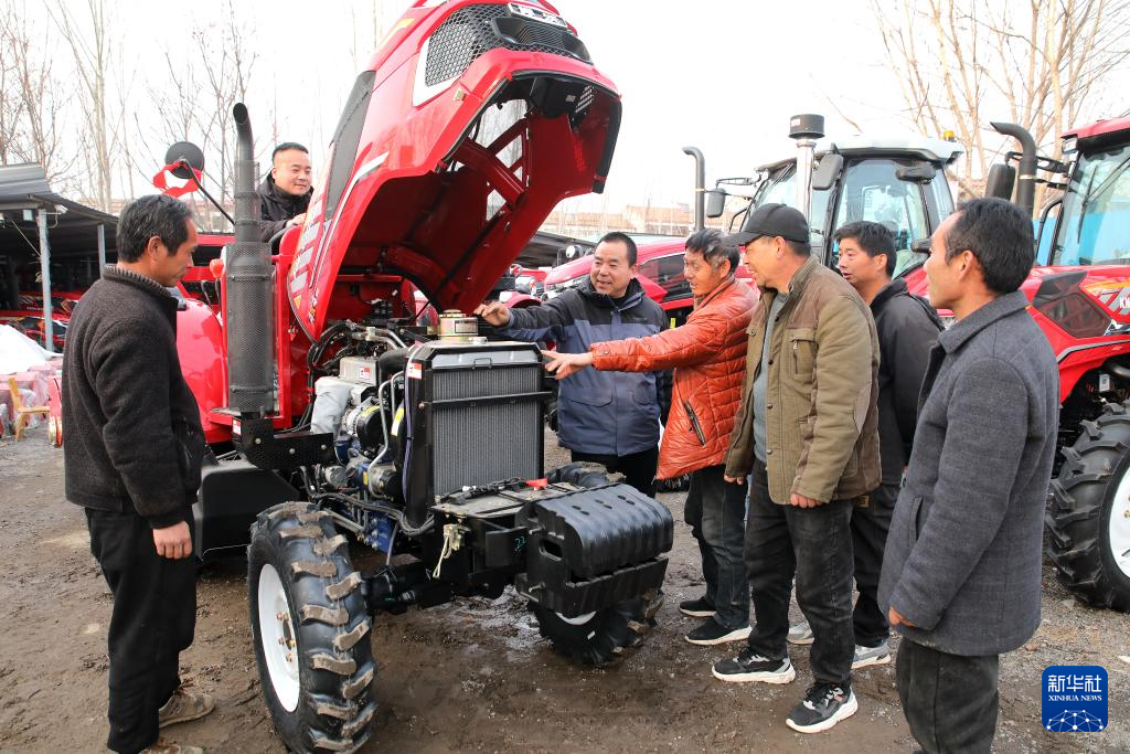 2月27日,河南省开封市尉氏县邢庄乡的农民在尉氏农机市场上选购农机。