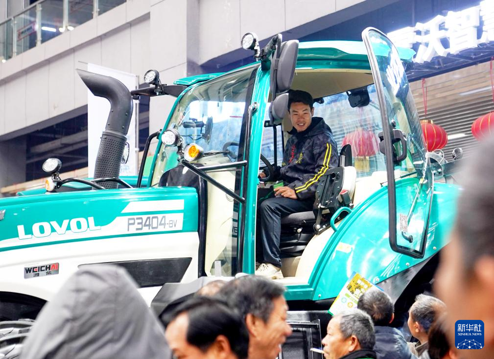 2月27日,在江西省南昌市举行的2024年第四届中部(江西)农业机械及零部件展览会上,参观者在体验一款拖拉机。