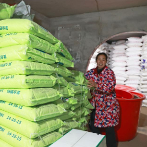 2月27日,在贵州省黔东南苗族侗族自治州岑巩县羊桥土家族乡一处农资储备点,农民在搬运化肥。