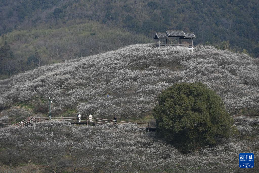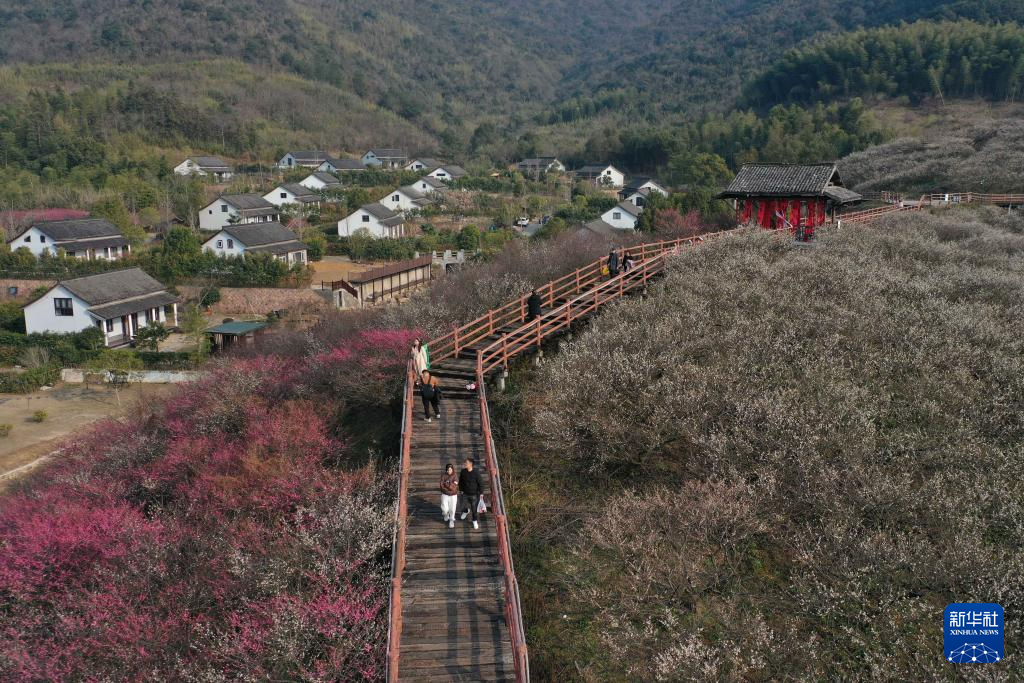 当日,第六届西塞山梅花节在浙江省湖州市吴兴西塞山旅游度假区原乡小镇景区开幕。漫山遍野的白梅、红梅、绿萼梅竞相绽放,吸引不少游客前来观赏。