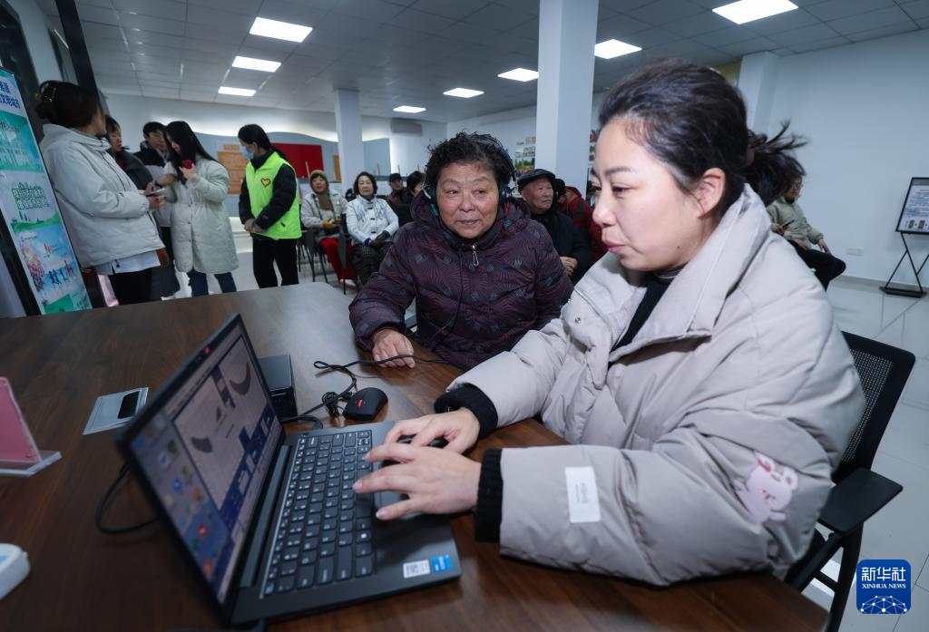 2月28日,在龙泉街道紫云社区,老年人在进行听力检查。