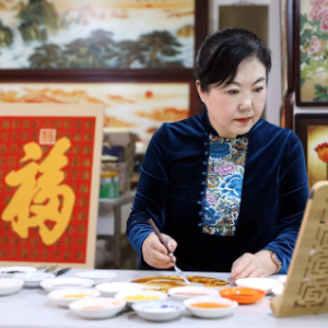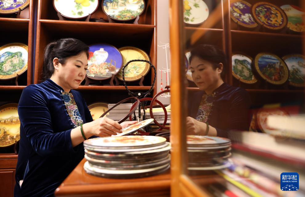 春节刚过,位于辽宁省凤城市凤凰山脚下的凤城景泰蓝珀晶画工作室内,55岁的锡伯族非遗传承人刘晶涛和她的徒弟们正忙着制作各式景泰蓝珀晶画。