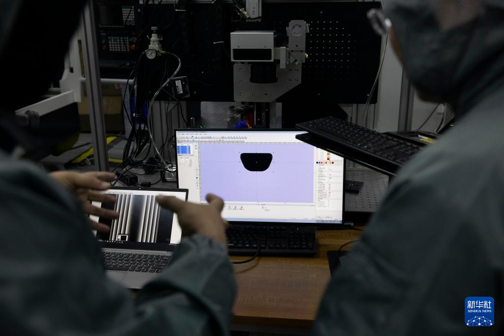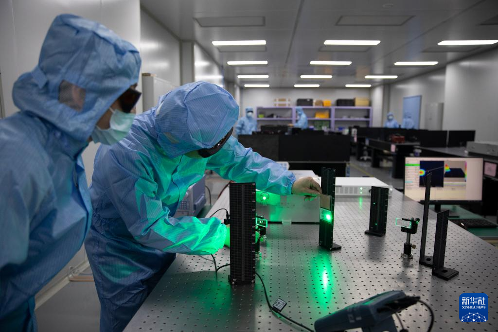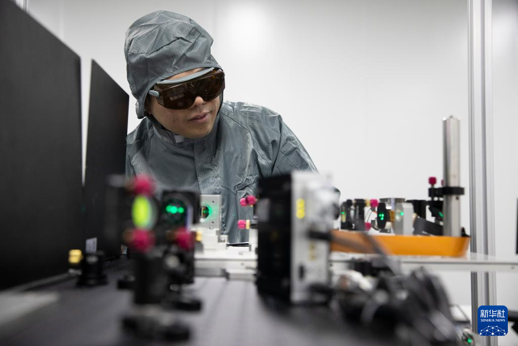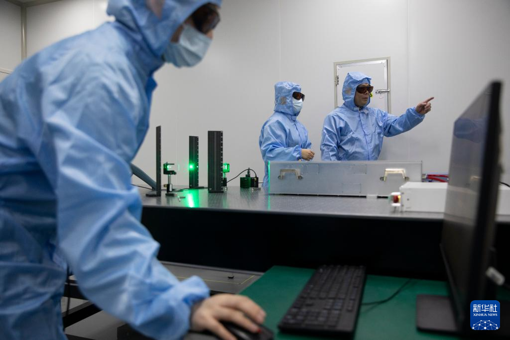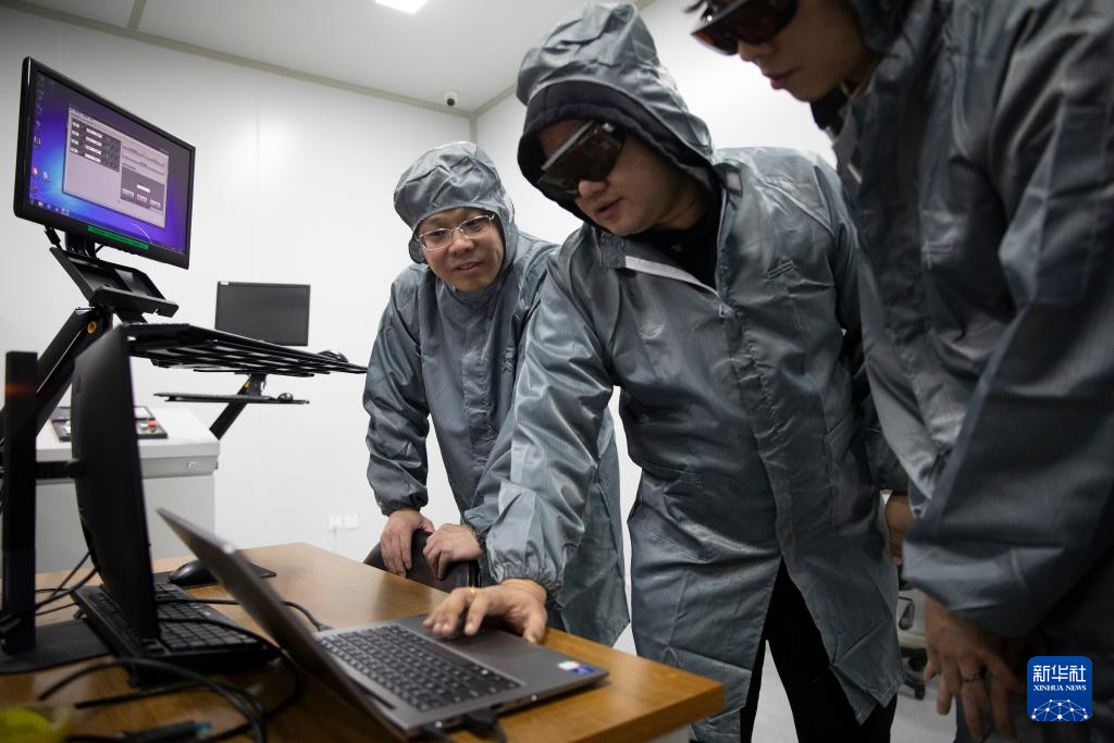 1月17日,在位于西安的中科微精总部实验室,杨小君(右)在调整实验设备。