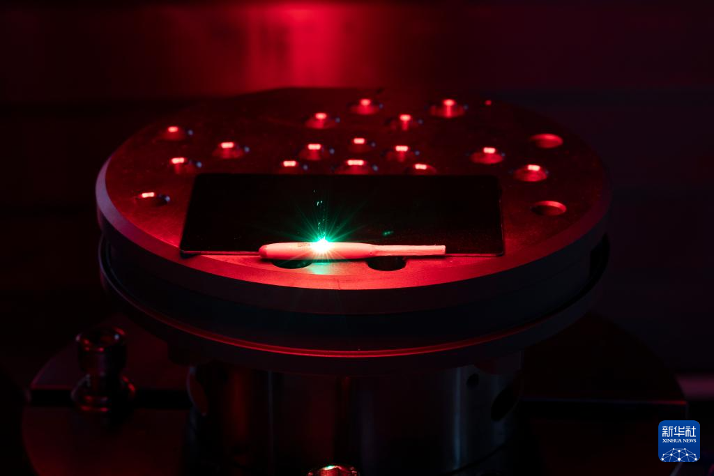 1月19日,在位于西安的中科微精车间,工作人员用超快激光微加工技术在火柴头上刻字。