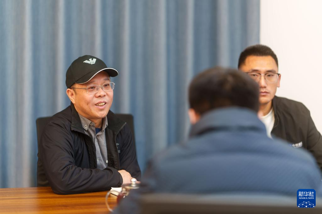 1月18日,杨小君(左)和同事在位于西安的中科微精总部办公室开会讨论工作安排。