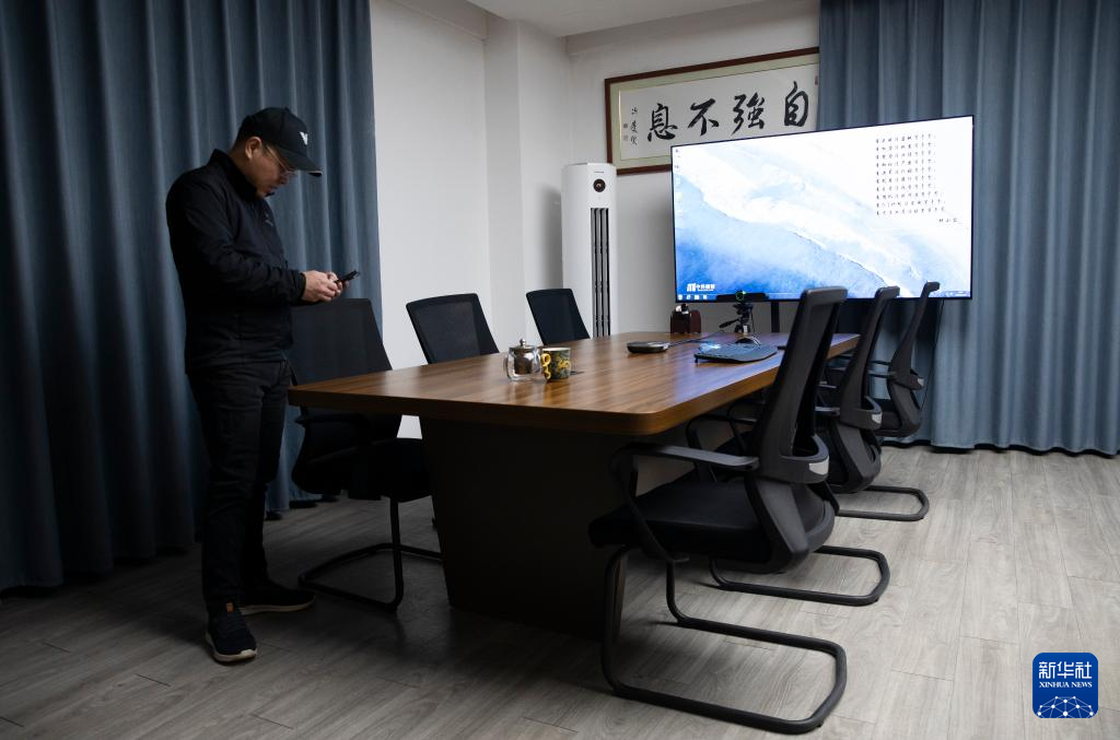 1月18日,杨小君在位于西安的中科微精总部会议室等待员工们过来开会。