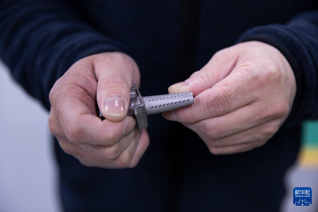 1月19日,在位于西安的中科微精车间,杨小君向记者展示他们加工的新型发动机涡轮叶片。