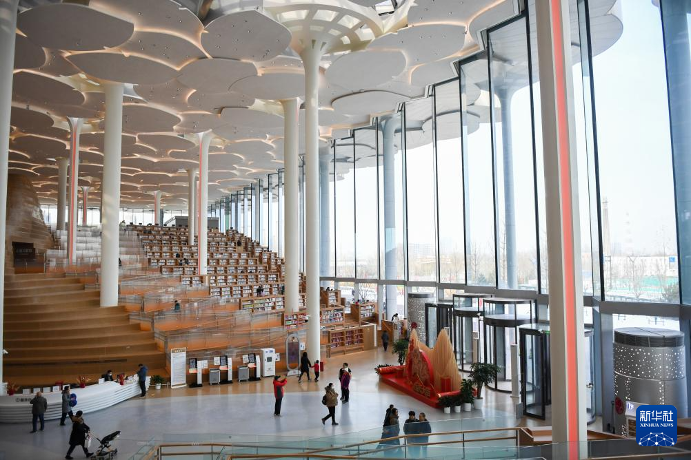 北京城市图书馆内景(2月28日摄)。
