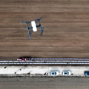 2月29日,航测无人机在山东莱西市店埠镇左官屯村农田上空进行测量(无人机照片)。