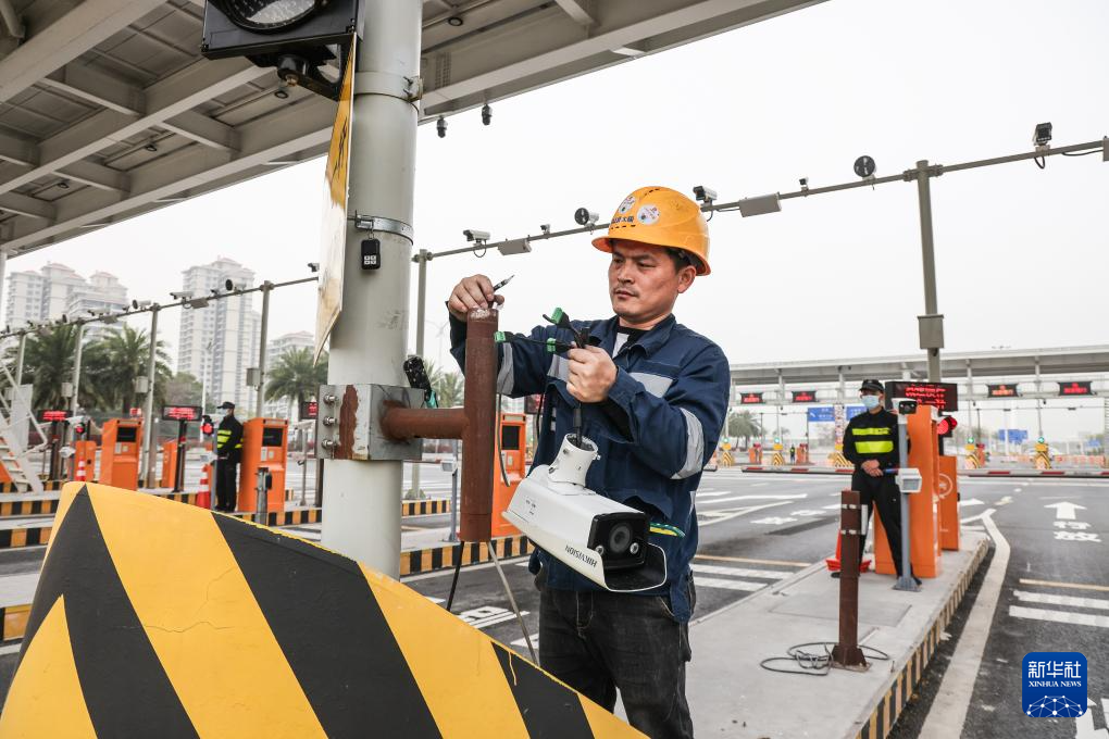 2月29日,工作人员在横琴大桥“二线”通道海关监管区维护监控摄像头。