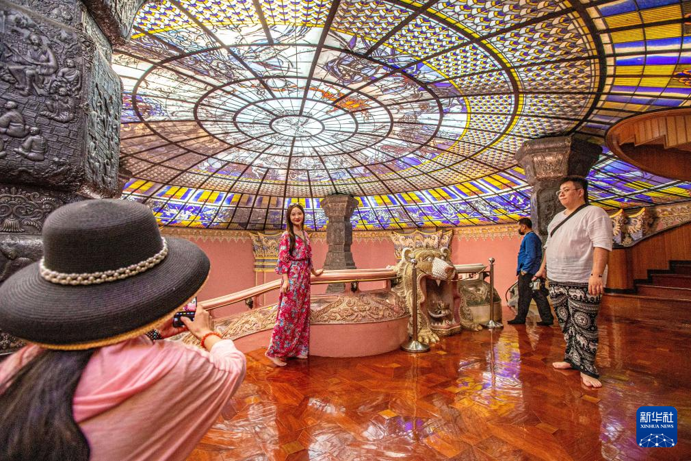 3月1日,中国游客在泰国北榄府爱侣湾博物馆游览。