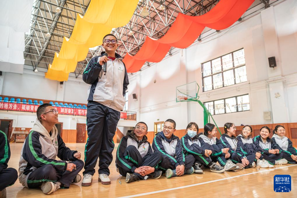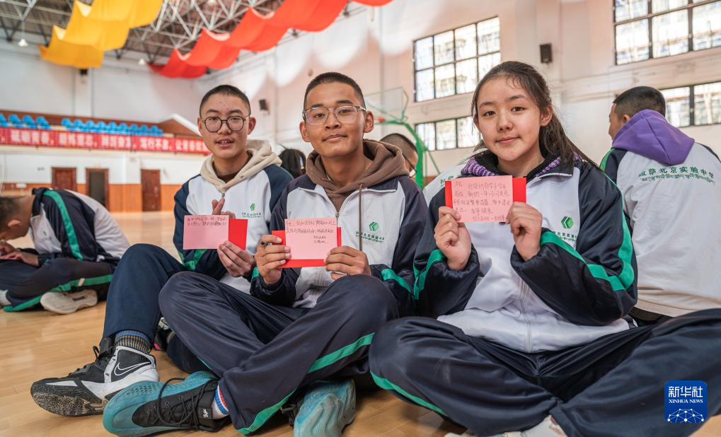 3月1日,拉萨北京实验中学的学生与老师交流新学期愿望。