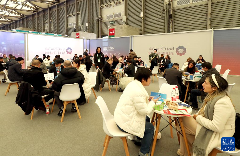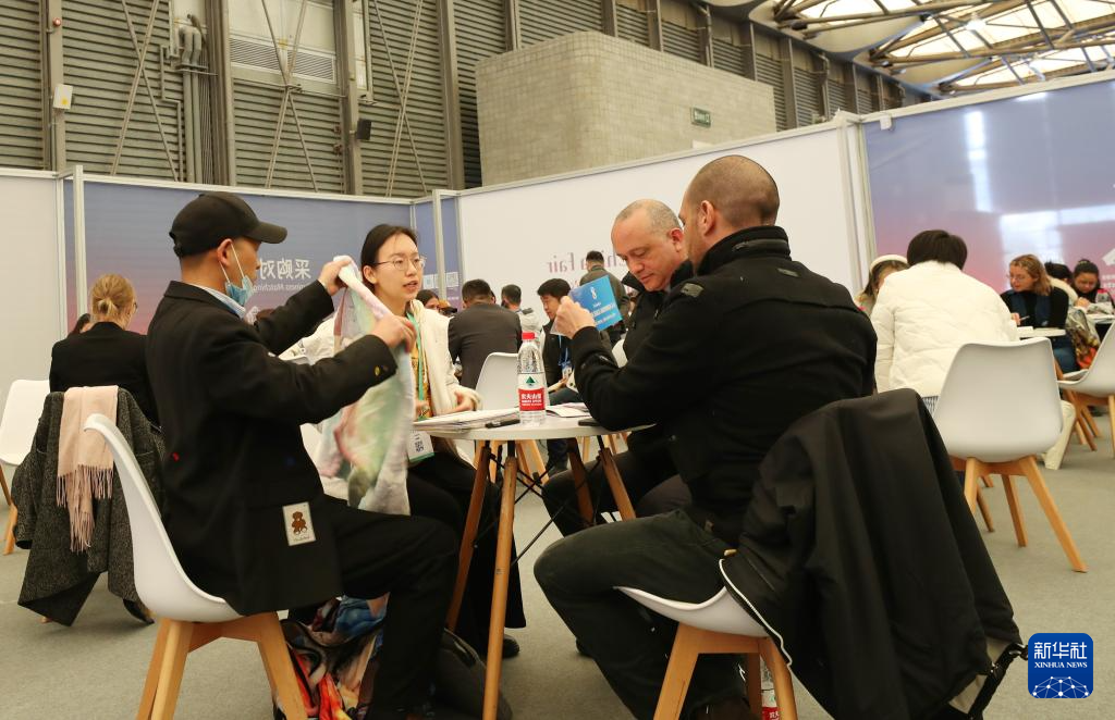 3月1日,展客商在华交会采购对接会现场交流洽谈。