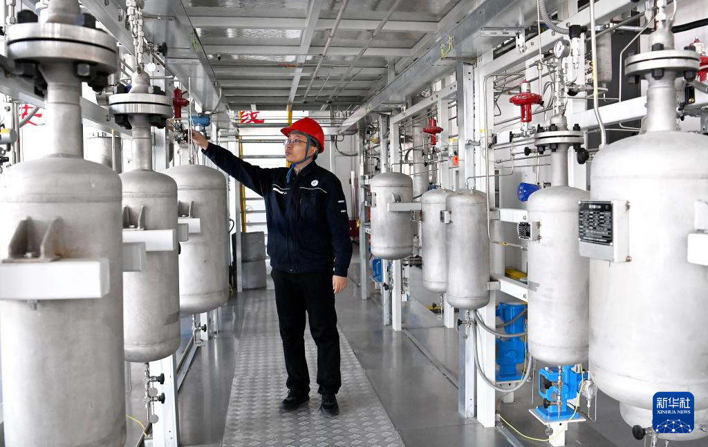 2月28日,工作人员武鑫在榆林中科洁净能源创新研究院多种反应器工艺放大平台实验室调试反应装置。