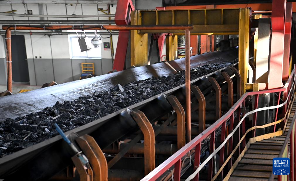 2月29日,陕西陕煤曹家滩矿业有限公司的输送带将煤炭从主井口运出。
