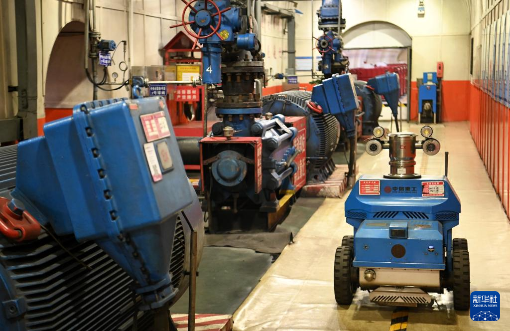 2月29日,机器人在陕西陕煤曹家滩矿业有限公司井下中央水泵房巡检设备。