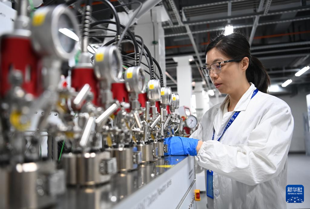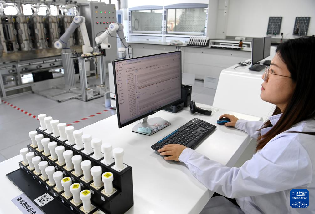 2月28日,工作人员党小梅在榆林中科洁净能源创新研究院基于人工智能的高通量催化反应研究平台实验室进行实验。