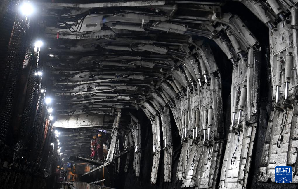 2月29日,工作人员在陕西陕煤曹家滩矿业有限公司全自动液压支架支撑的采煤工作面巡检。